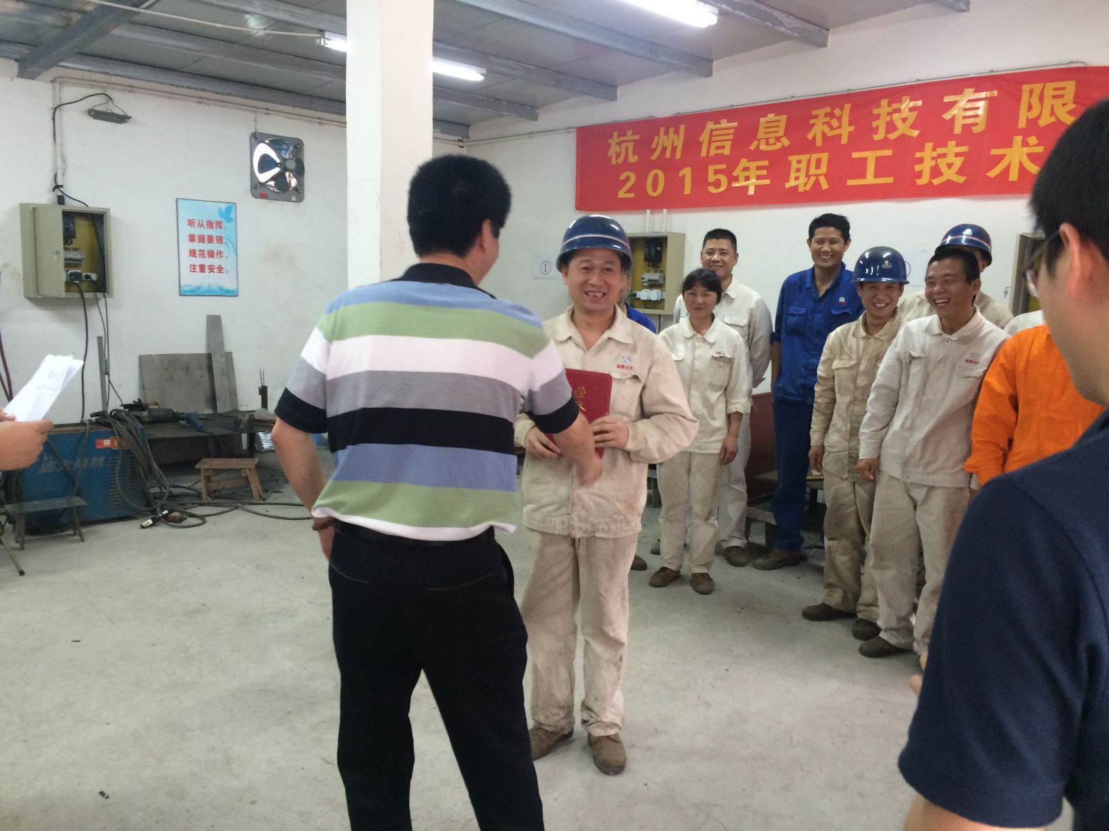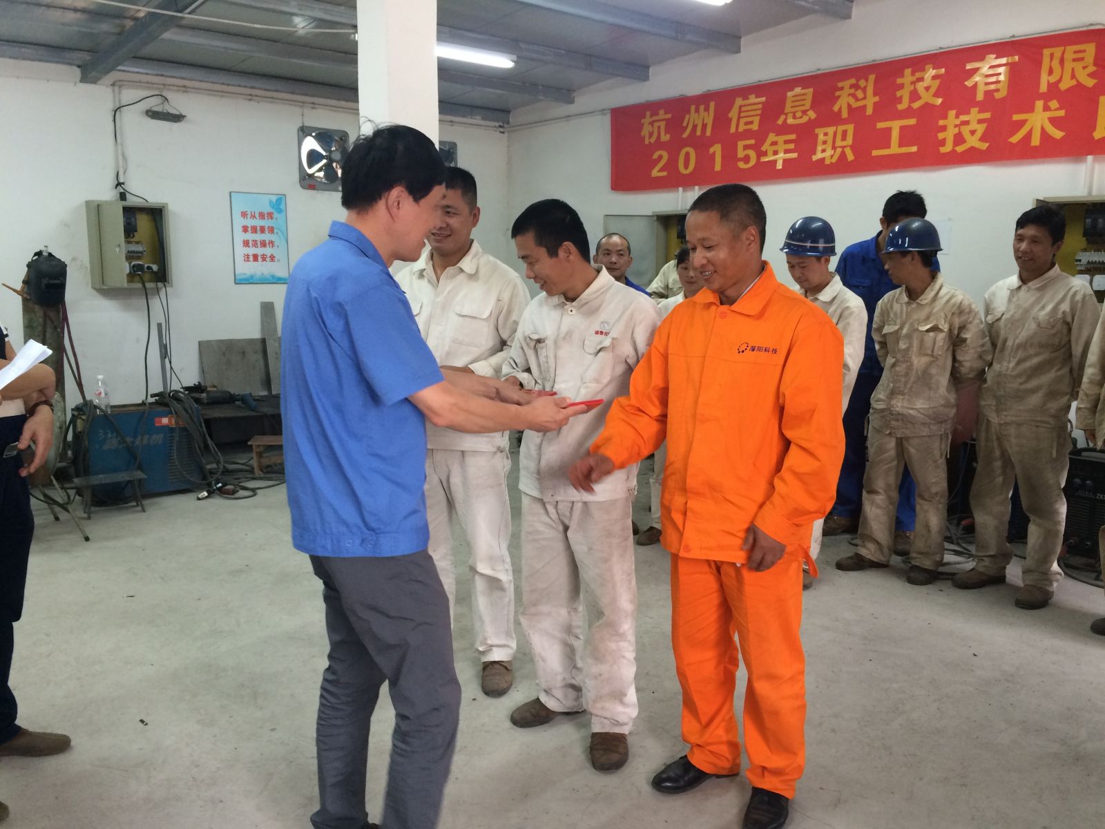 為了激發(fā)全體員工學(xué)習(xí)知識(shí)、技術(shù)的積極主動(dòng)性,形成奮發(fā)向上、爭創(chuàng)一流的氛圍,我公司與杭州信息科技有限公司于2015年9月28日聯(lián)合舉辦了一次電焊技能交流大賽。公司技術(shù)人員積極參與了比賽,并使出自己的真本事取得了優(yōu)異的成績,展現(xiàn)了誠泰人的風(fēng)采。公司董事長親臨現(xiàn)場為獲獎(jiǎng)?wù)哳C發(fā)獲獎(jiǎng)證書,并鼓勵(lì)各技術(shù)人員再接再厲,勇創(chuàng)佳績。