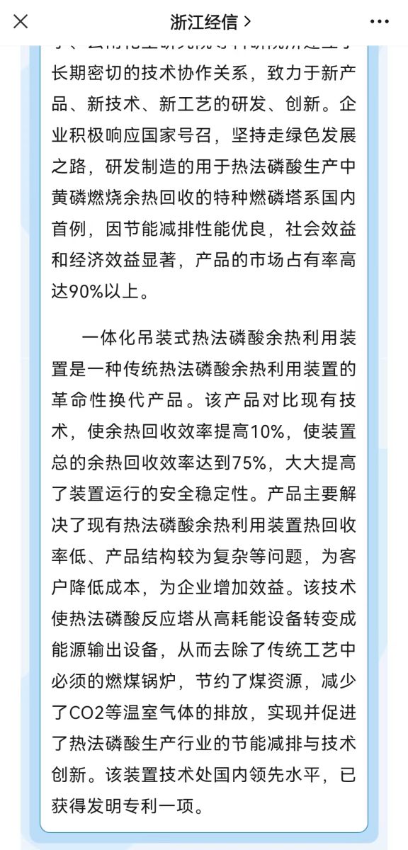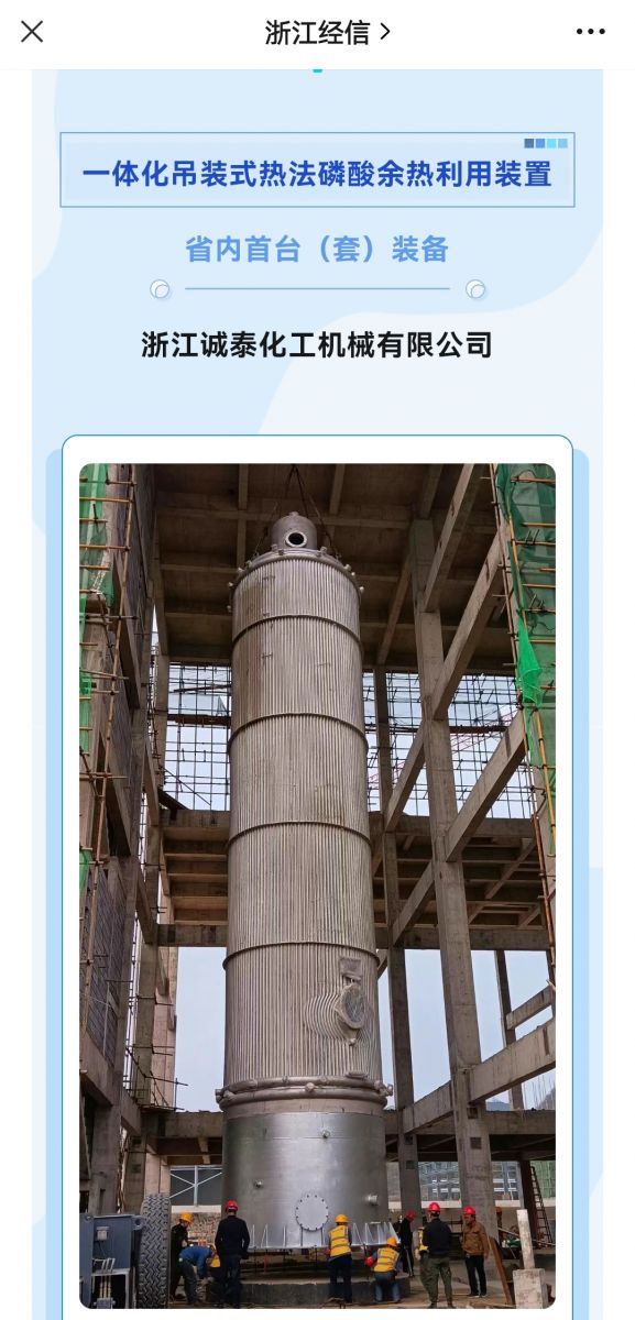 恭喜我公司“一體化吊式熱法磷酸余熱利用裝置”被評(píng)為浙江省內(nèi)首臺(tái)套裝備