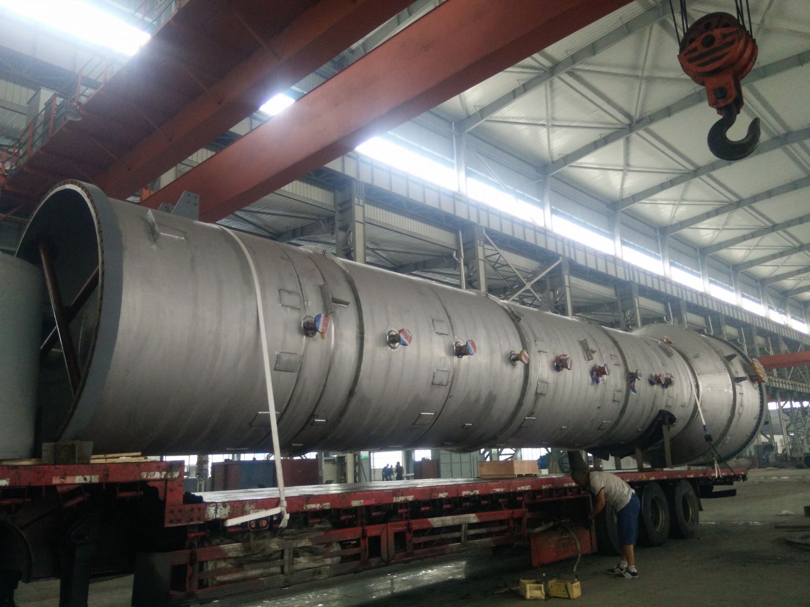 福建己內(nèi)酰胺萃取塔 DN2400mm/DN3200mm, 上下兩段總長(zhǎng)約38000mm