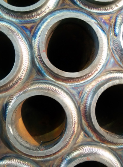 2015年春季,黃梅天氣持續(xù)不斷,空氣潮濕。我公司為了保證產(chǎn)品質量,采取了電工與焊工合作,邊預加熱邊焊接的方法,很大程度上確保了產(chǎn)品的焊接質量。換熱管焊接均采用兩層焊接的方法。如: