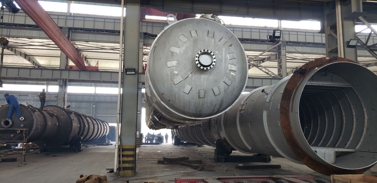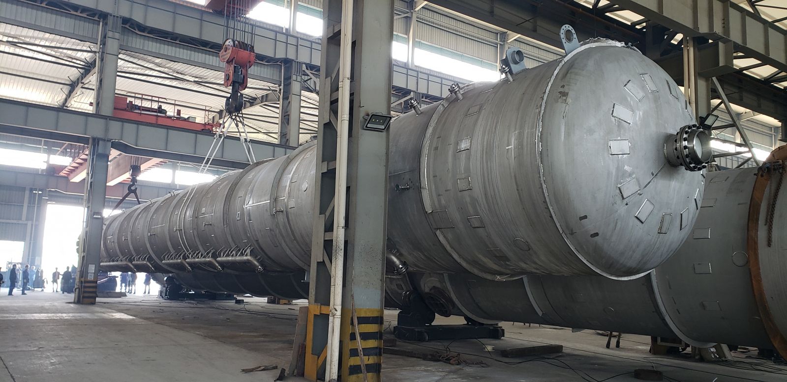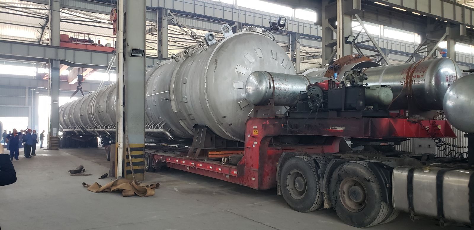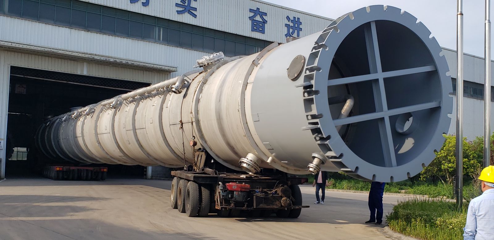 在疫情持續(xù)高壓形勢下,我司員工一手抓抗疫,一手趕工期,今天又將兩臺重146噸長達43米的大塔(三脂塔),如期完工,正整裝待發(fā)。